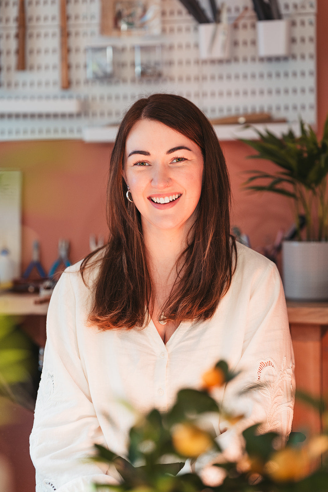 I`m originally from Hungary and moved to the UK in 2010 with my now husband. We live in a beautiful little village in rural Sussex with our two daughters and favourite assistant, Biscoff, the ginger fluffball - and this is where I make my gentle bohemian pieces from my home studio.
