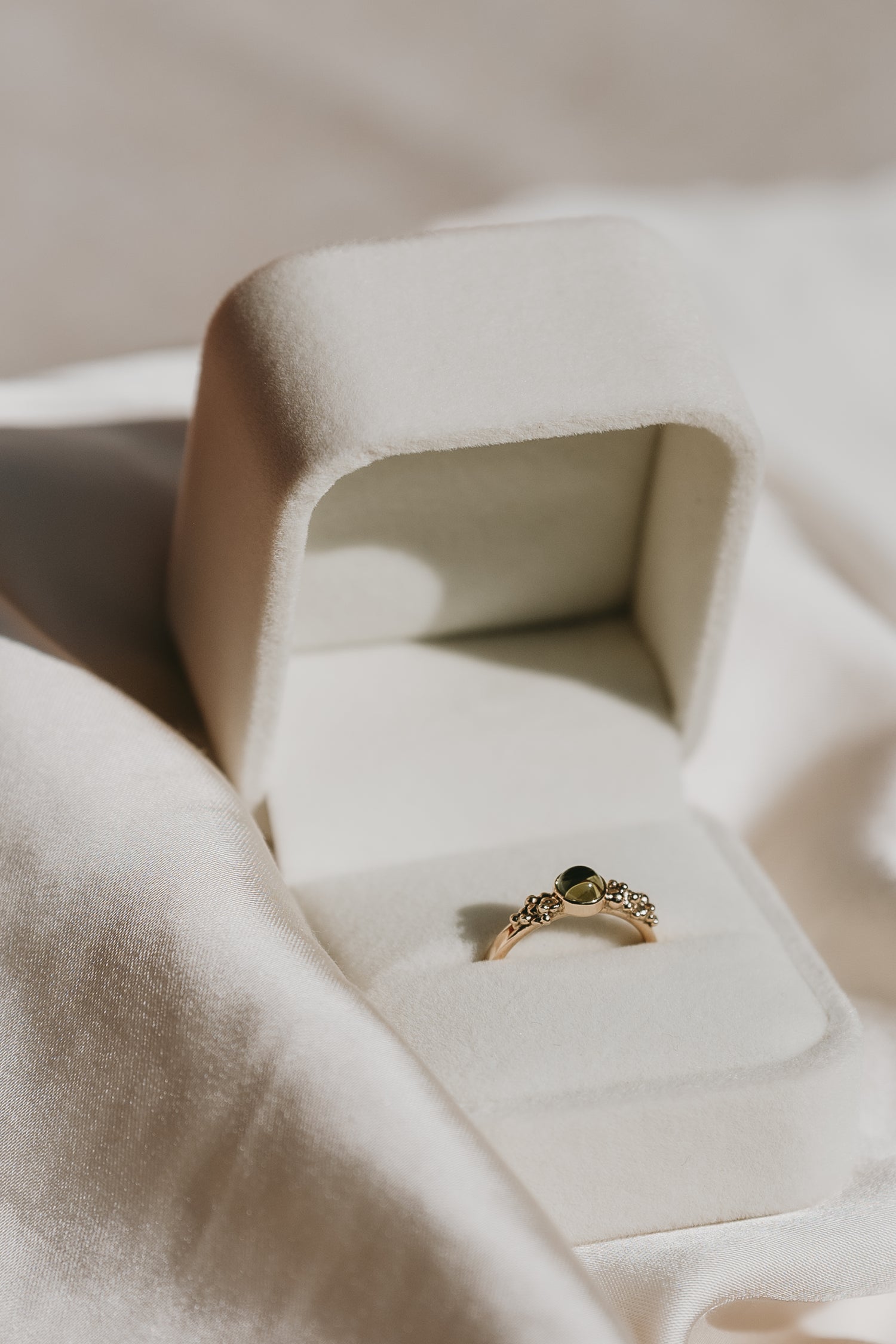 I love a special and sentimental piece so this bespoke engagement ring was super exciting to create! Our lovely bride-to-be loved. the unique look of granulation in my designs and chose a beautiful Peridot stone as the star of this heirloom ring.