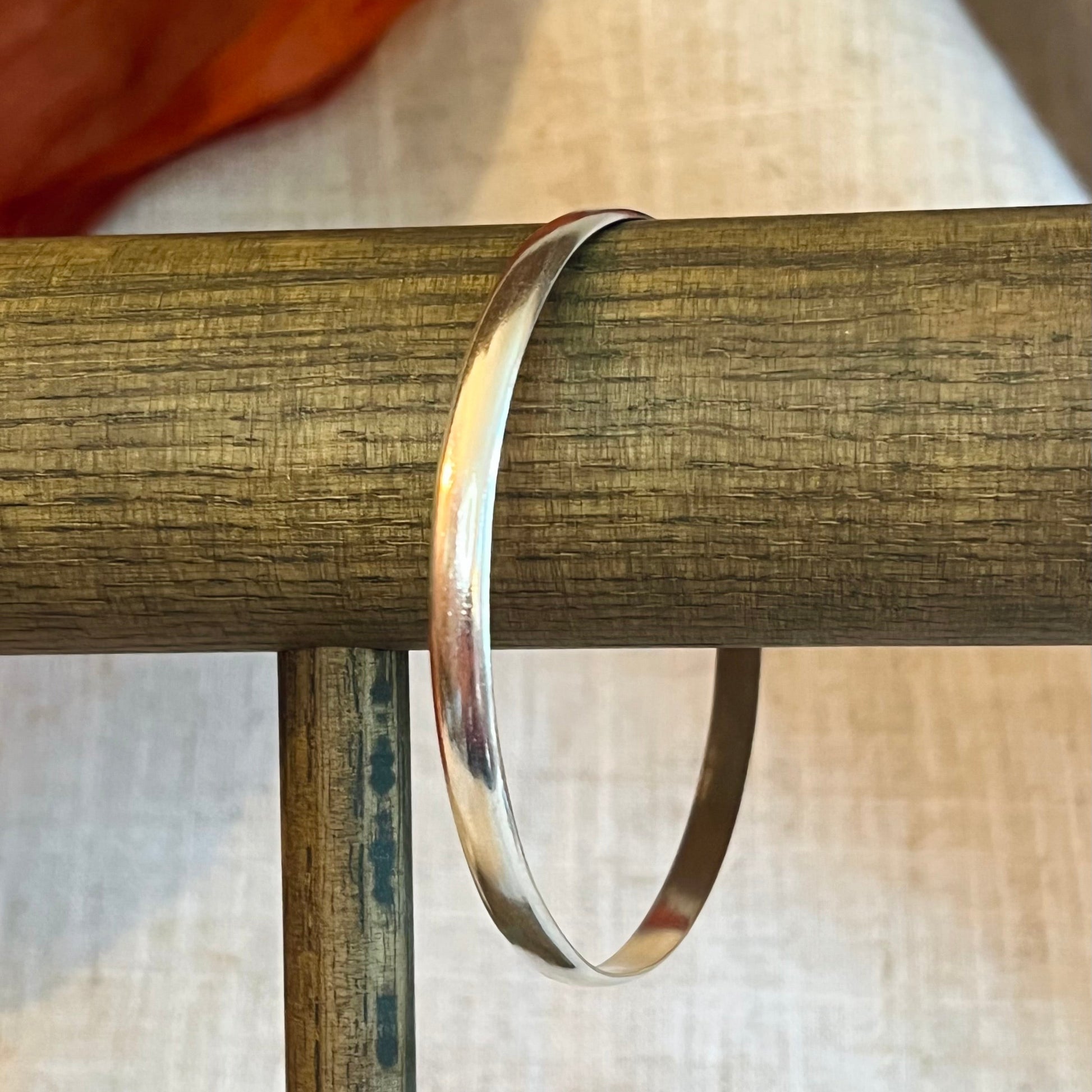 This recycled sterling silver bangle is beautifully handcrafted and polished to a high shine, giving it a sleek and elegant finish. Simple yet striking, it’s a timeless piece that’s perfect for any occasion. Each bangle is made with care, combining sustainability with style for a jewellery staple you’ll love to wear.