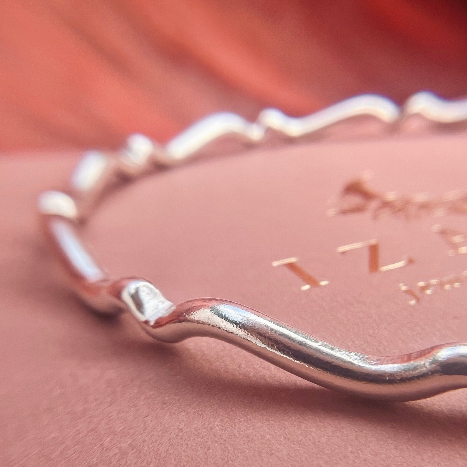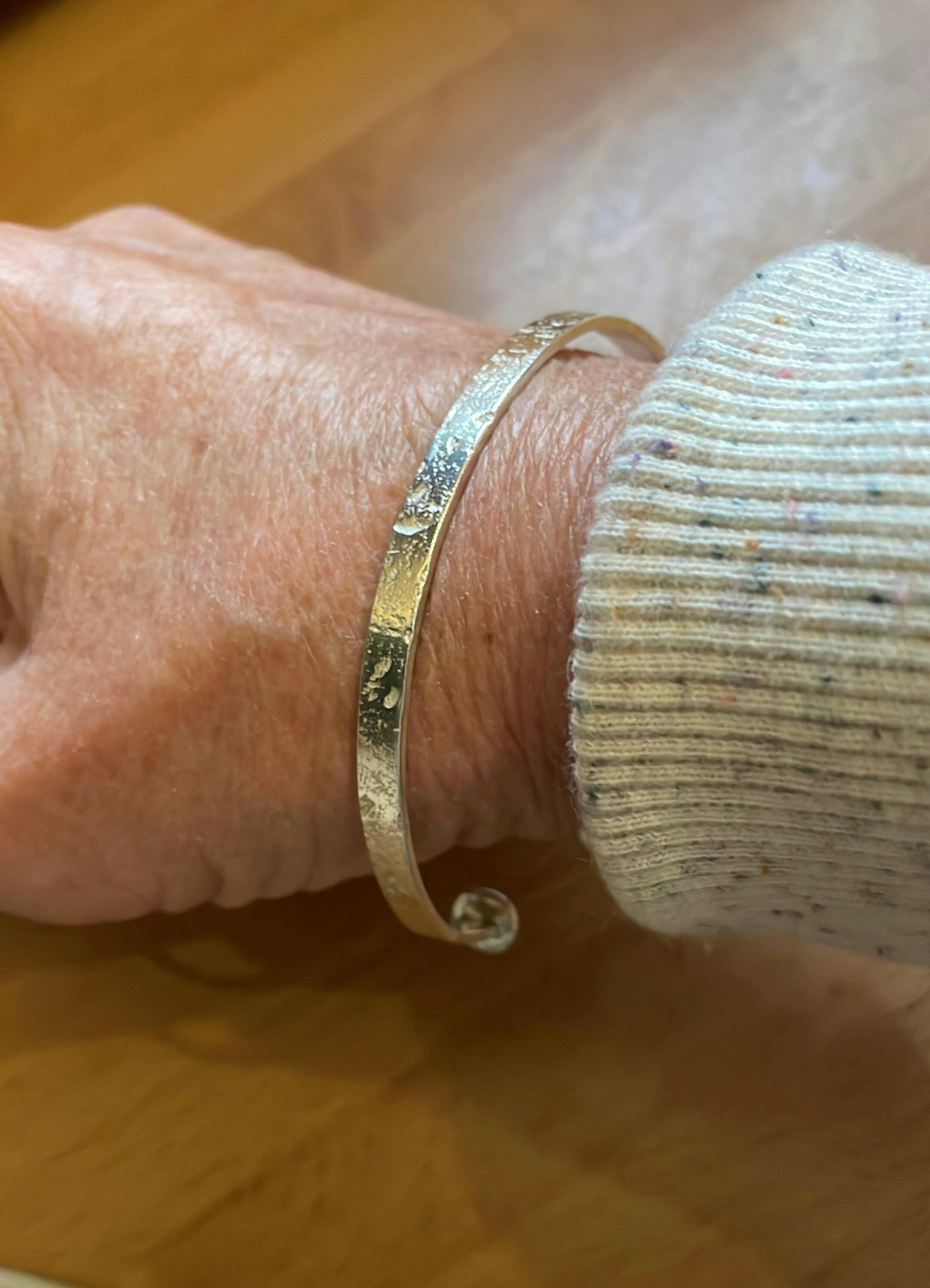 You can choose from creating a solid silver bangle or a pair of stacking bangles in your chosen design. You can give it a hammered, textured finish or personalise with stamped details, maybe a special date or quote.