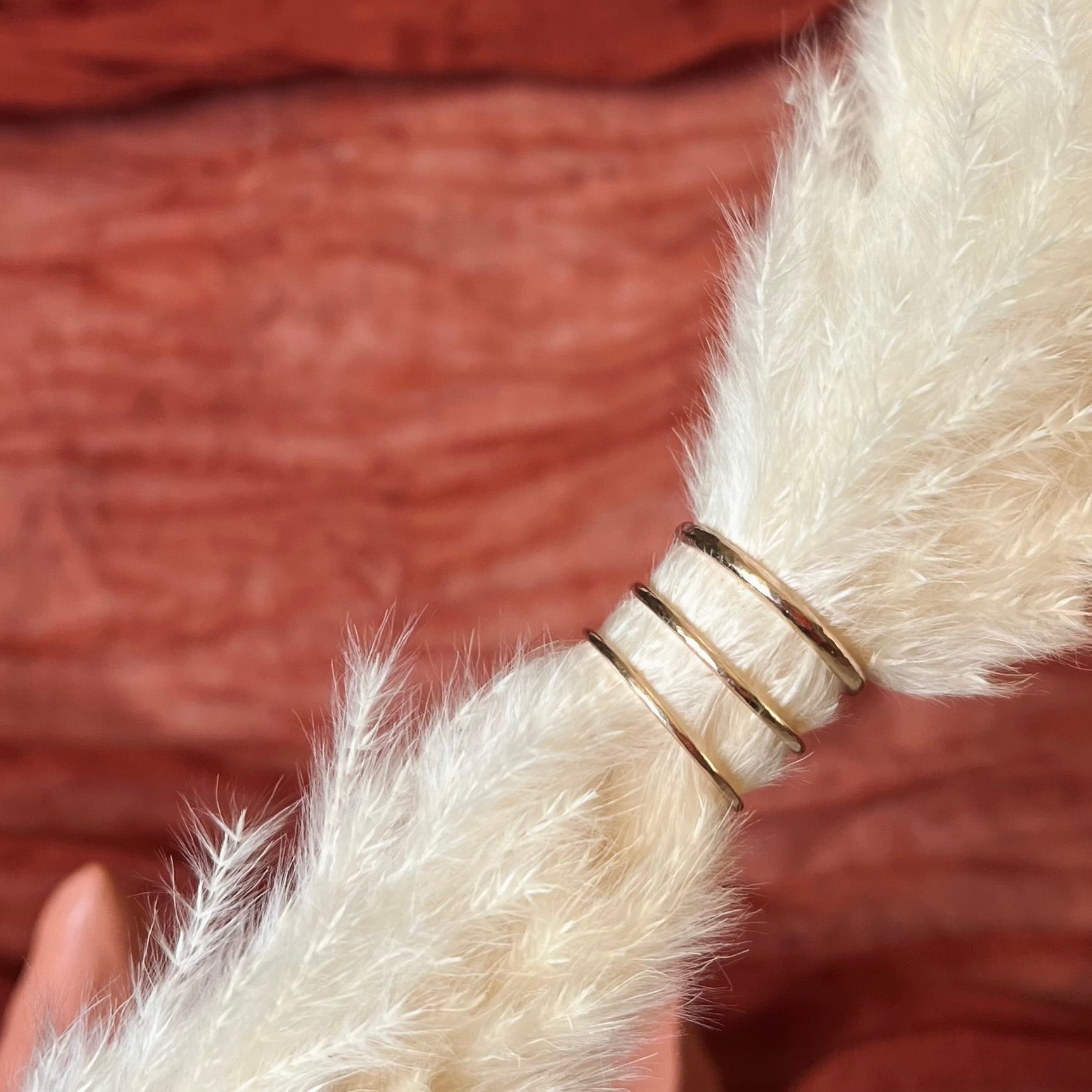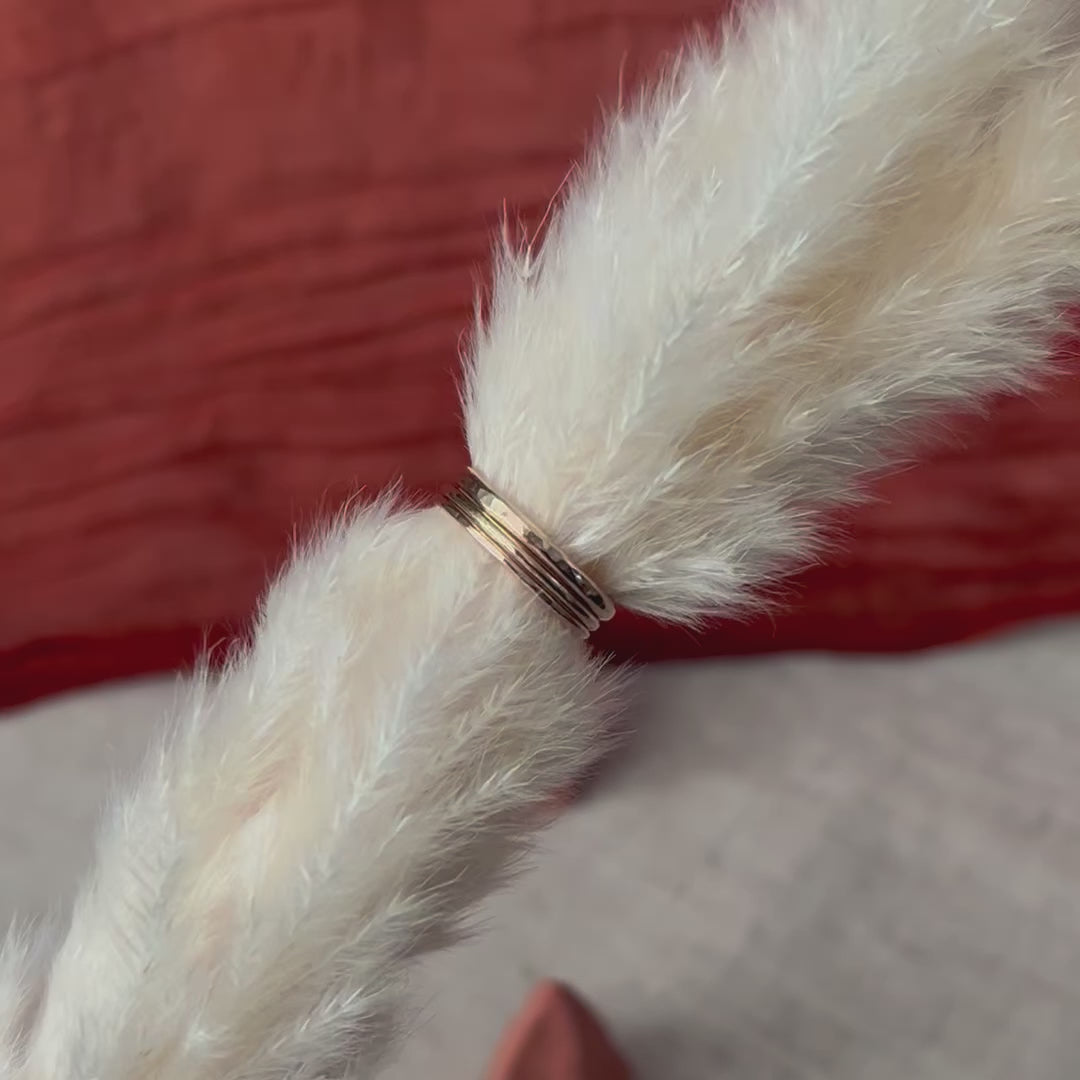 Available in three different widths and a range of textured finishes, they can be worn solo for understated elegance or stacked together for a layered look that’s all your own. Perfect as a thoughtful everyday piece, part of a stacking set, or as meaningful wedding bands with a sustainable story behind them.