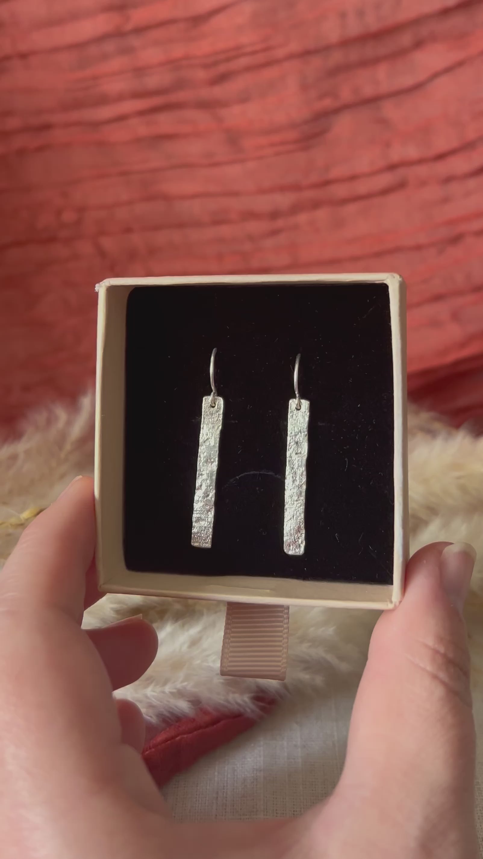 Textured Dangle Strip Earrings by Izabella Szabo Jewellery, crafted from recycled sterling silver, offer a sleek and modern design. Handmade with care, these earrings feature a subtle texture that adds dimension and interest to their minimalist form.