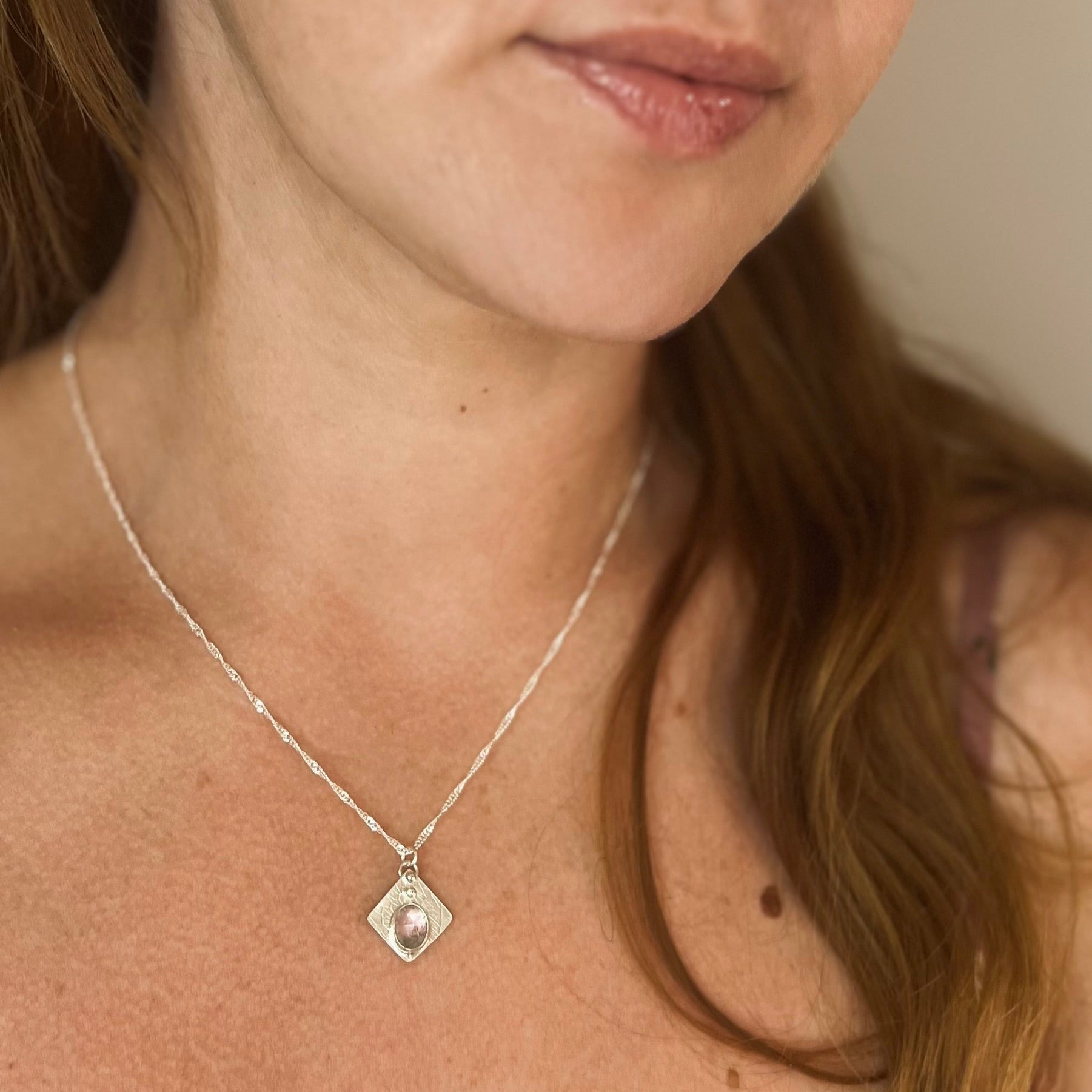 Watermelon Tourmaline & Hydrangea Necklace – Recycled Sterling Silver